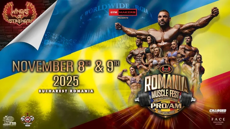 Ajunsă la ediția a VIII-a, competiția internațională ROMANIA MUSCLE FEST PRO-AM și expoziția ROMANIA MUSCLE CON vor avea loc pe 8 și 9 noiembrie 2025, la Face Convention Center din București, organizate de Alina Popa, Jake Wood și Claudiu Streza, sub egida Wings of Strength & NPC Worldwide/IFBB Professional League.